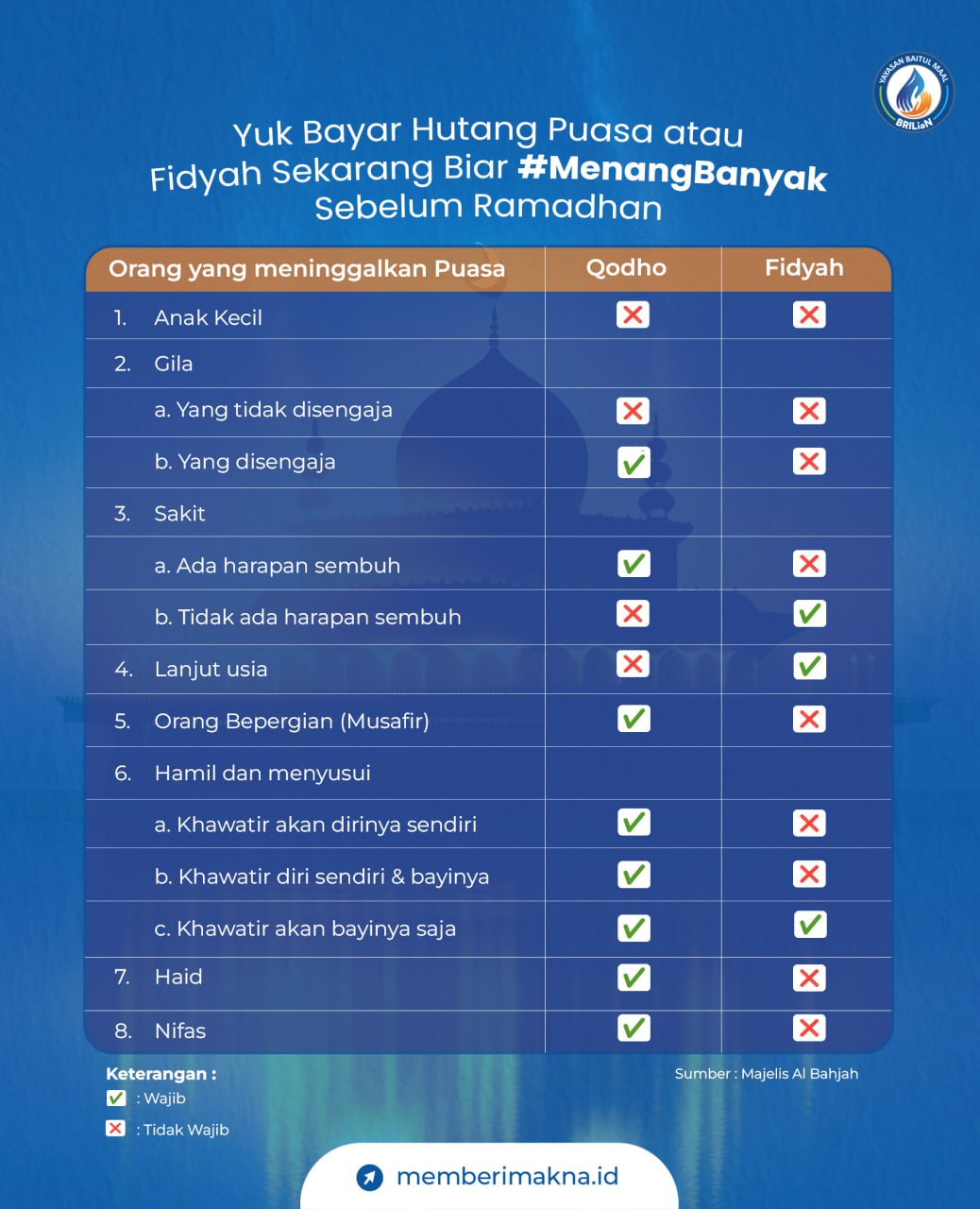 Dari ayat di atas diketahui bahwa fidyah wajib ditunaikan bagi orang-orang yang meninggalkan kewajiban sesuai ketentuan syariat. Adanya fidyah merupakan bentuk kasih sayang Allah SWT kepada hamba-Nya dengan tidak membebani kewajiban diluar batas kemampuan.